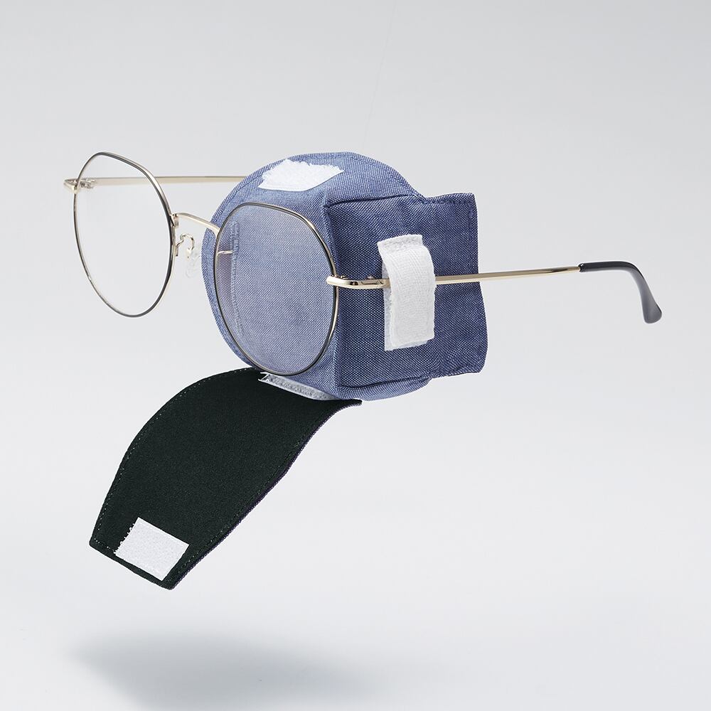 メガネに装着するタイプのアイパッチです・肌に直接貼らないので粘着剤でかぶれやすいお子さまにもご使用いただけます・肌に直接触れる裏生地に綿100%素材を使用しています・裏生地に黒い布を使用していますので光を遮ることができます・様々なサイズ、形状のメガネに装着できます・手洗いすることで繰り返しご使用いただけます・日本製。